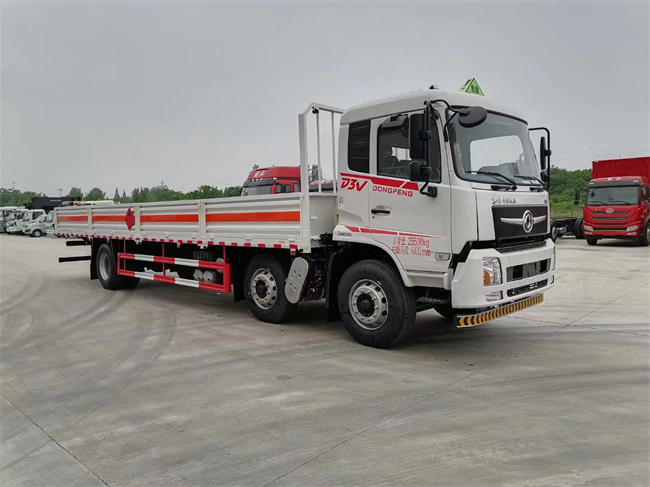 底盘配置: D3V平顶驾驶室(DFCV天锦驾驶室车身), 康机B6.2NS6B260发动机配法士特9档,玉柴245配法士特8档变速箱,6吨双前桥,10吨后桥,295/80R22.5 18PR轮胎,铝400L油箱,带空调,气廊座椅,电动玻璃,中控锁,前盘限速,行驶记录仪,后桥空悬,危险警示灯。带EBS(电空制动系统),TPMS(前轴单台胎压监测),ESC(防侧翻系统),EACS(驾驶室气囊调节),AEBS(主动刹车系统)。