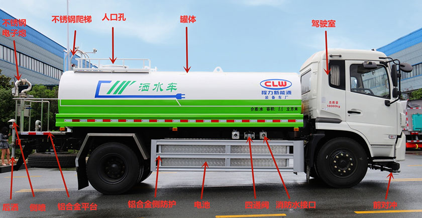 CL5181纯电动洒水车是在东风EQ1181DACEV1二类底盘的基础上,加装低压冲洗、洒水系统,由机械、液压(气路)、电器三部分合为一体的专用洒水作业车。