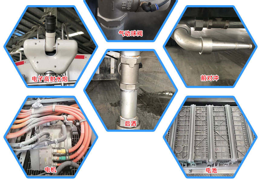 上装容积11立方,罐体采用Q235优质碳钢材质,铝合金后平台、铝合金侧防护,60-90洒水水泵,全自动前冲、后洒、高炮,可在驾驶室一键操作洒水功能。高炮射程可达35米以上。