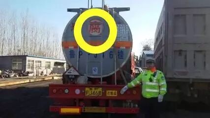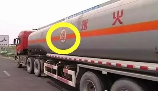 危化品车罐体都贴有专门警示标志!这是区分危化品车辆和非危化品车辆的很重要,也是最明显的标志!除此之外,危化品车车头都有悬挂“危险品”的牌子!