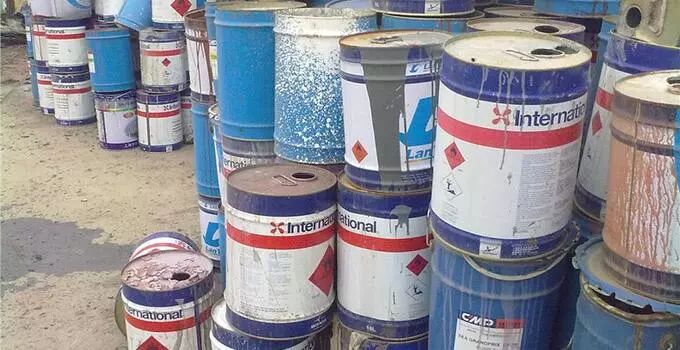 废油漆桶内通常残留部分废油漆、涂料、废有机溶剂、废机油等危险废物,但危废处置单位在回收废油漆桶时关注的第一个焦点便是油漆桶内的危险废物残留量,如果残留量超过5%,需要进行分类处理再回收。