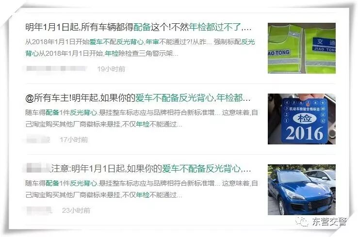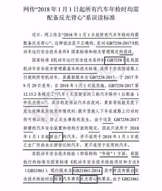 近日,网上传言“2018年1月1日起所有汽车年检时均需配备反光背心”如下: