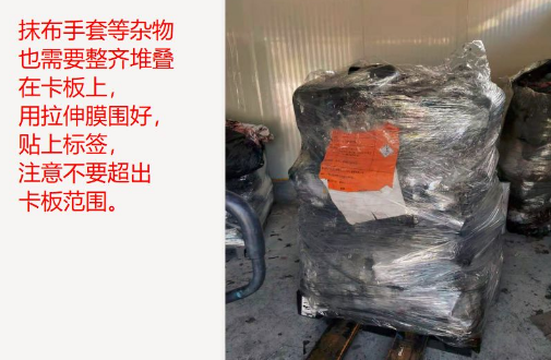 一、收运前包装必须满足四个基本要求: 1. 存放仓库不泄漏,运输过程不泄漏;2. 必须用卡板和拉伸膜打包成一板一板,收运时可直接叉走;3. 贴上危废标签;4. 满足不同处置基地的进场规范(如限高要求)。 二、常见的危废及打包规范示例说明: