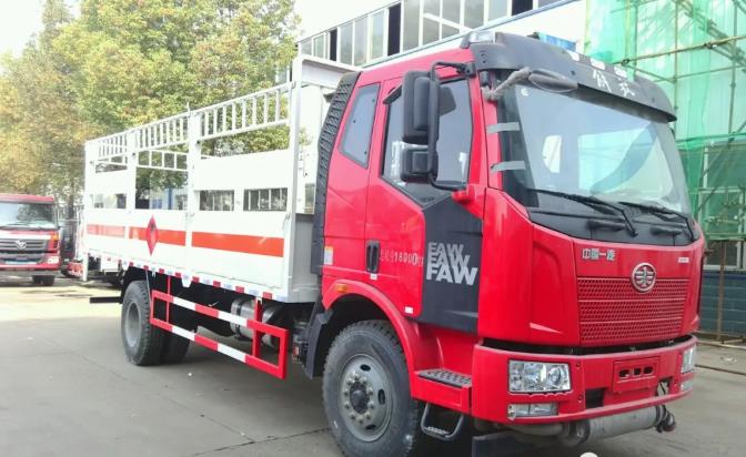 低栏板式气瓶运输车,厢体为栏板开放式结构,厢体深度为60cm,厢体材质为冷轧钢板板,厢体侧面及尾部可翻转打开,适用于裳跗瓶、二氧化碳气瓶等卧式气瓶运输。
