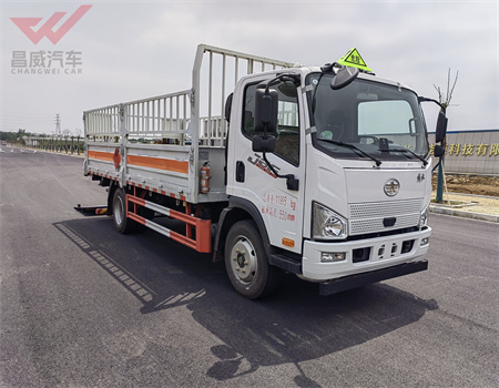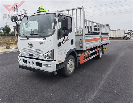 上装配置: 厢体为金属骨架结构,龙门架为圆管结构,边板为瓦楞板。底板生产工艺采用3mm花纹板,高550mm墙板,高栏结构(可拆卸式高栏),底板铺静电胶皮,配备随车工具, 具体做法严格参照公告图片制造。配备随车工具,灭火器,三角顶灯,防静电拖带,贴反光标识等。