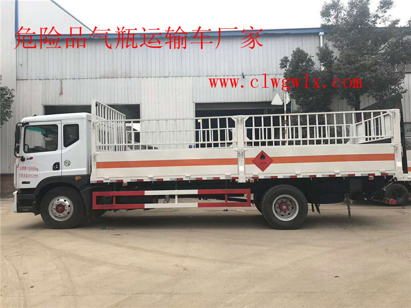 东风D9气瓶运输车 东风D9气瓶运输车配置说明: 底盘配置:东风D9底盘,康明斯160马力发动机(ISD160 50),7档变速箱,断气刹,空调,中冷增压,动转,电动玻璃,可选择中控门锁,ABS、前盘、排气前置、行驶记录仪,9.00R20钢丝胎。 专用配置:厢体尺寸:6200×2350×600(mm),边板对折四开门、外板采用1.2MM厚冷轧板,内衬为矩形管骨架牢靠稳定,底板为3mm厚花纹板,有静电带、灭火器、防火罩。整车国标反光标示及警告标志。 运输介质:具有独立罐(瓶)容器包装的易燃气体:液化石油气,压缩天然气,乙炔,乙烷,丁烷,丁烯,丙烯.甲烷.二甲醚,压缩氢.类项号2.1,运输具有独立容器包装的非易燃无毒气体:二氧化碳,压缩氧. 压缩空气(氮,氦,氩,氖),类项号2.2,该车运输的气瓶盛装介质2.1项易燃气体时,车辆左、右侧及后部粘贴“易燃气体”标示牌,该车运输的气瓶中盛装介质2.2项非易燃无毒气体时,车辆左、右侧及后部粘贴“不燃气体”标示牌。 | |||||